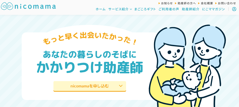 地域によっては訪問ケアにも対応しています。https://nico-mama.jp/about/family-midwife/